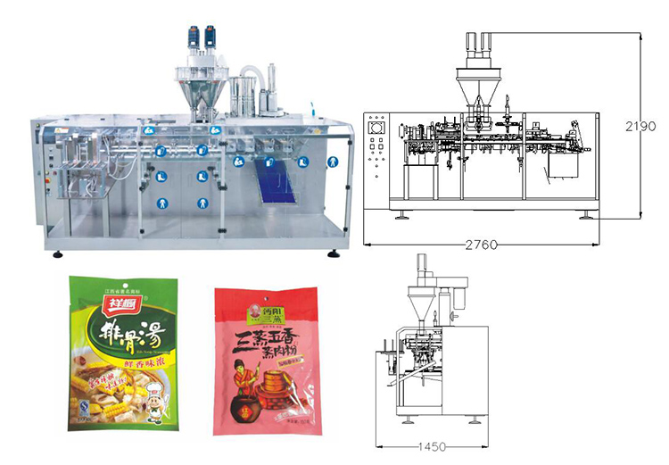 1. The powder material metering and packaging system consists of a horizontal bag-feeding packaging machine and a blanking system;