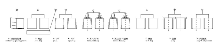 4、雙給袋包裝係(xì)統,包裝(zhuāng)速度更快、重量更準(zhǔn)確,采(cǎi)用高質量的配件,保持機器的持(chí)久穩定;